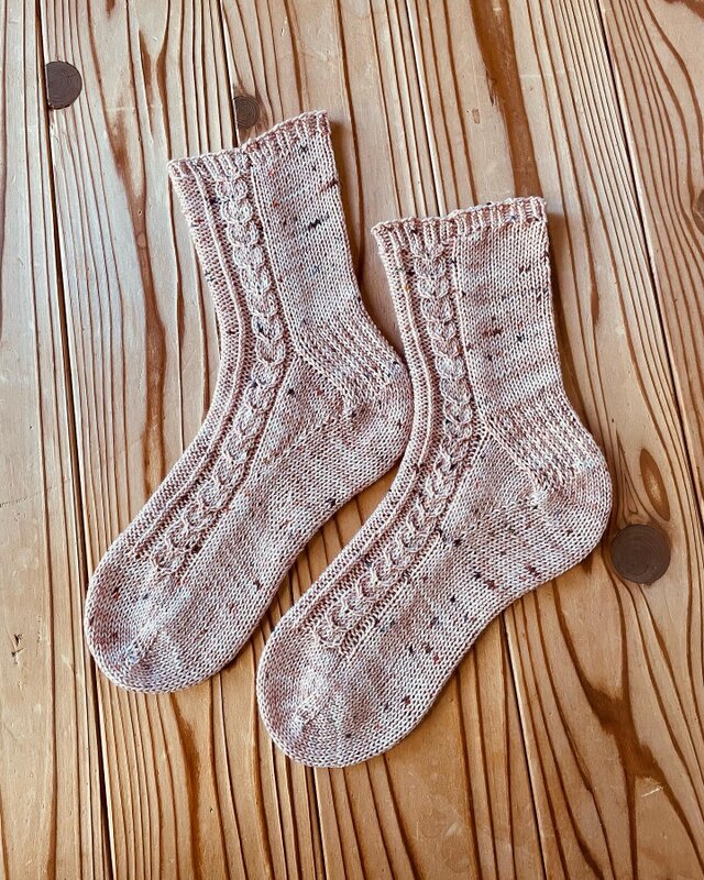 ちなみに竹串か?!ってくらい細い針で編んでるので意外と薄いです。普通の靴下と同じように履けますよ♪