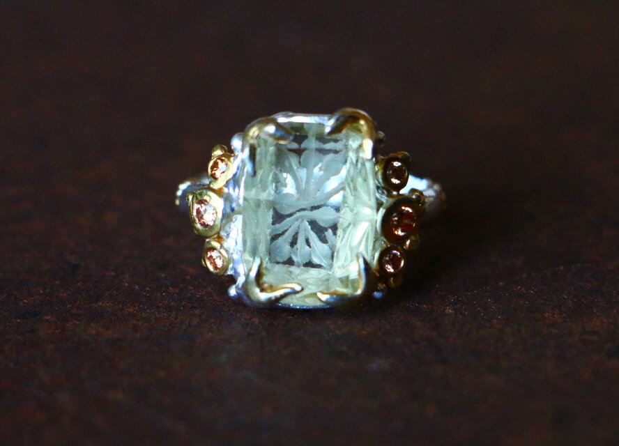 シンセティックで宝石を楽しみたいと思いこちらの作品に辿り着きました。 ルビーもエメラルドも写真で想像していたより大ぶりで濃く美しい色合いで感動しました。デザインもレトロな雰囲気が可愛くて石に合っていてとても素敵です。大事に使わせていただきます。