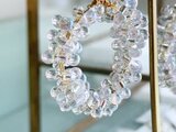 光を反射してきらめくガラスビーズをフープ上に仕立た軽いつけ心地のイヤリング/ピアスです。
