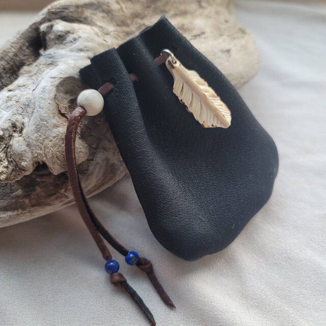 こちらは【鹿革のミニ巾着 フェザー】になります。
