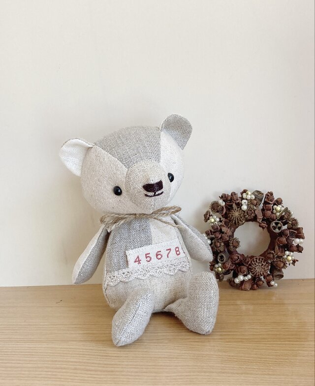 リネン生地を使って、くまのぬいぐるみを作りました。