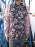 新作手作り長袖和柄シャツ(桜 黒×桜色)
