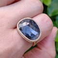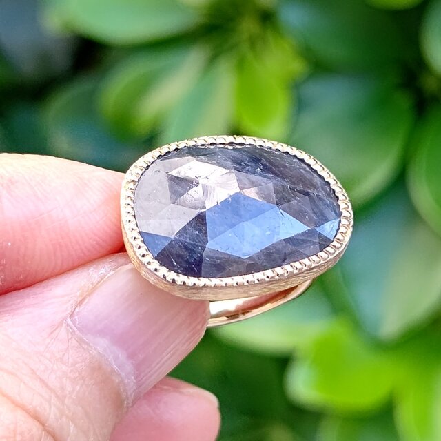 サファイア 濃いグレー 変形オーバル チェッカーカット シルバーSV925リング