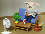 1/12サイズ ソファ2人掛け(色:ライトブルー×チェスナット)