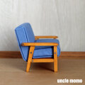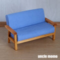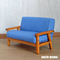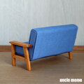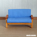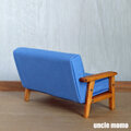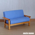 ドール用ソファ2人掛け(色:ライトブルー×チェスナット) 1/12ミニチュア家具