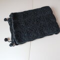 濃紺のウールに極細モヘアを絡めて編んだモチーフをつないだストールです。