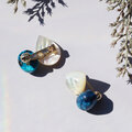 虹色の光沢をもつ白蝶貝とデュオ/2粒セットにして、オーロラ舞う地球の情景を描きました。