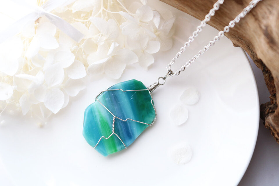ステンドグラス用のガラス板の端材を使用したペンダントです。