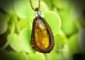 ゴールド樹木★アンバー琥珀 マクラメネックレス715