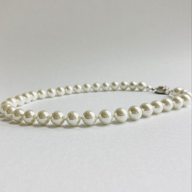 ガラスパールオールノットネックレス/10mm約43cm/パールホワイト/R/made in japan