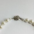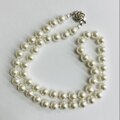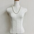 オールノットネックレスの特徴として、万が一、糸が切れた場合でも最小限で抑えられる点や、玉同士が密着していないので擦れあいにくく傷も付きにくい点、首回りにフィットしやすくなっている点等がございます。この仕様は特に海外で人気があり、比較的高品質アクセサリー類によくみられる仕様です。弊社の自社工場にて塗装したパールになります。品質の状態も維持されており、剥がれや大きな目立った傷などもございません。稀にピンホールや小さい凹み等が見られる場合がございますが、自社にて検品の上、品質に問題は無く許容範囲とさせて頂いております。
