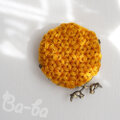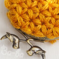 光沢のあるオレンジ色のサマーヤーンでふんわりと編み上げ、小鳥の口金と組み合わせました。