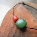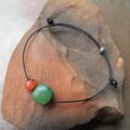 紐の先端には、黒のヴェネチアンシードビーズを使用しています。