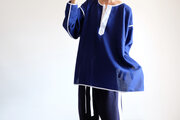 ビックヘンリーネック ZIPスリット カットソー /ウールメッシュ【ウルトラマリンブルーに白パイピング・ピンクZIP】