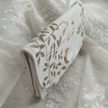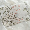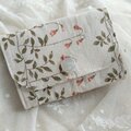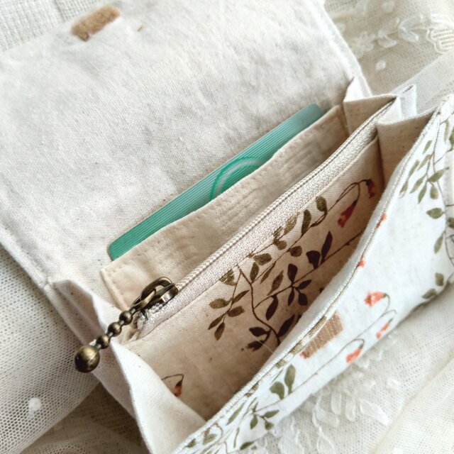 生成りにつる草とお花の可愛いコットンリネンのミニ財布です。