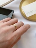 アクセサリーに慣れている方ですと、ご使用のアクセサリーと比較して頼りない・物足りないと感じる方もいらっしゃるかもしれませんが、素材自体に摩耗・劣化がないジュエリーアイテムですので、ケアがうまくいっていますと末永くご愛用いただくことが可能なリングです。