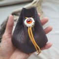 調整用の鹿角輪切り部分にバルティックアンバーを埋め込みました。