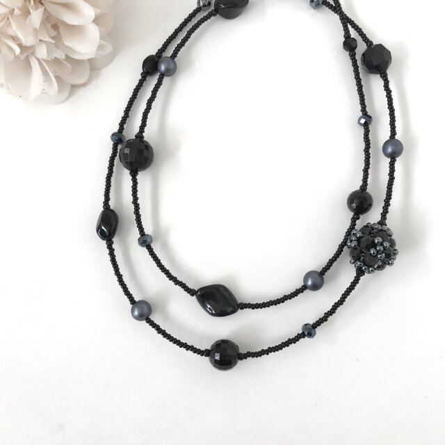 #ネックレス #ビーズ #パール #大ぶり #上品 #黒 #ブラック #ビーズボール #通年 #シンプル #母の日 #一連 #クラシック #デイリー #プチギフト #クラシカル #通勤 #シック #チェコガラス #marigold #ロングネックレス #誕生日 #ギフト #ビーズアクセサリー #秋 #キラキラ #冬 #クリスマス #丸 #エレガント #ビーズステッチ #ビーズ編み #ビーズジュエリー #グラデーション #ダーク #クール #大人 #メタル #グレー #バロックパール #モノトーン