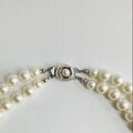 こちらはガラス素材の原玉に、オリジナルカラーのパール塗料にて何層にも渡り重ね塗りを施した、日本製ガラスパール2連ネックレスになります。パールの間1つづつ丁寧に結び目を入れたオールノットタイプのネックレスになっております。