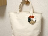 光沢感ある濃いオレンジ色や銀杏色のハギレで表現しました。
