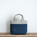 藍で染めた青色のリネンで小さなトートバッグをつくりました。