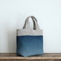 藍でグラデーションに染めたリネン生地でトートバッグをつくりました。海を感じさせる色味に染めました。