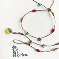 細いワックスコードにカラフルなビーズを散りばめて