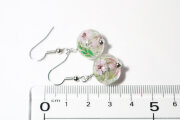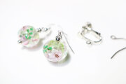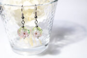 薄黄緑×薄ピンクの地に、桜を咲かせたとんぼ玉のピアスです。