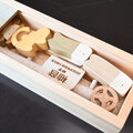 毎年5月が近づけば箱から出して組み立ててください。この五月人形は飾るだけでなく、木のおもちゃとしても使っていただけます。お父さん鯉はここでお母さん鯉はここでと、箱は船に見立て、鯉も登場人物になってお話が広がります。箱の底部分に、マストを差し込み、お人形を前に飾ってください。箱の裏も活用できる仕組みに感激してくれます。こいのぼりの木材はケヤキ、トチ、カヤノキ、カバ、クリの木で作られ、ナチュラルで暖かい木の色合いをお楽しみいただけます。