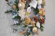 ゴールドのカラ―ボールが煌めくイルミネーションのようなリース。