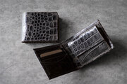 立体感のあるワニ革模様に仕上げたクロコダイルエンボスレザーで作ったハーフウォレットです。