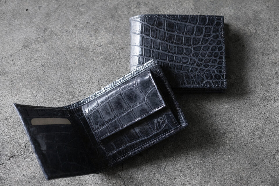 立体感のあるワニ革模様に仕上げたクロコダイルエンボスレザーで作ったハーフウォレットです。