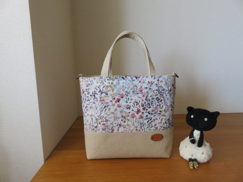 リバティ フェルダとバイオウオッシュ加工の8号帆布でトートバッグを作りました。