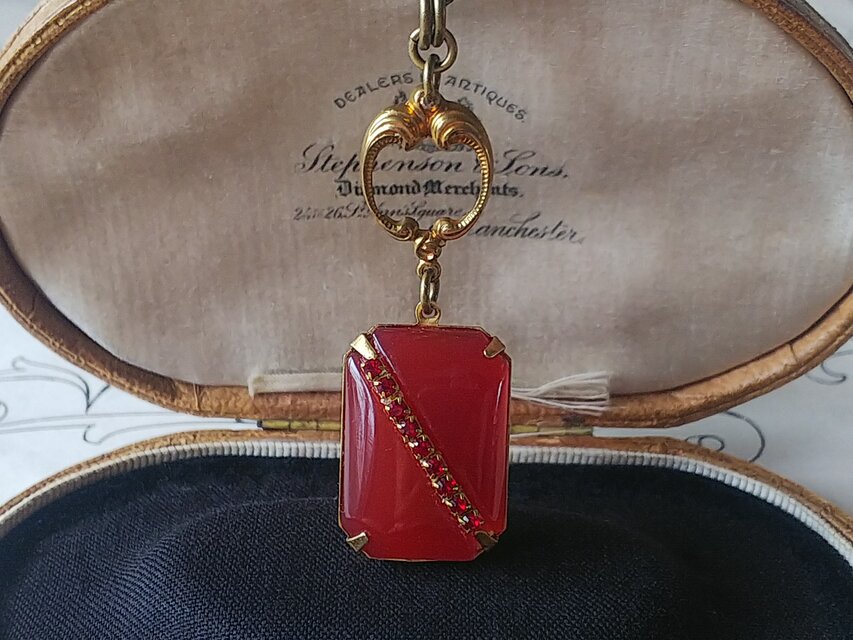 1926年、チェコスロバキアで製造されたましたカーネリアン色のGlassカボションを用いてお作りしましたネックレスです。