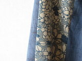 ・ブルーの花柄縮緬&シルク着物をパッチワーク シルク100%