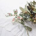 束ねた枝元には、ニゲラの色に合わせてアイボリーホワイトの松ぼっくりを入れました。
