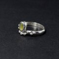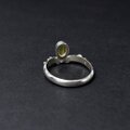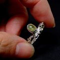 少しくすんだ緑がかった金色のクリソベリルキャッツアイを、デザインリングに仕上げました。