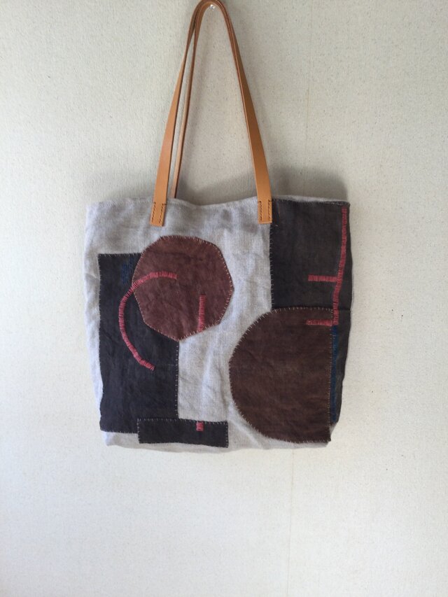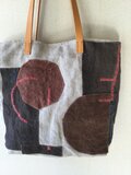 手染めのコラージュと刺し子のバッグ『丸い形と長方形』