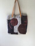 アップされて直ぐに目にとまりました!起毛リネンは初めてでしたが、草木染めの糸の色調と良く合って、手触りも含めて優しい雰囲気を感じました。癒される巾着です!一本の木のお色使いがとってもオシャレで額絵のようです!糸を重ねることによる陰影を見て色々空想して楽しんでいます!この度もアートなお作品を頂き本当にありがとうございました!嬉しすぎます!