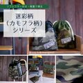 迷彩柄(カモフラージュ柄)に、オリジナルの刺繍タグ。
