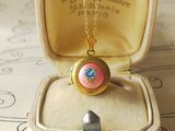 1960年代Japanヴィンテージ、約8㎜のpink地にBlue薔薇のGlasssカボションを用いてお作りしましたロケットネックレスです。