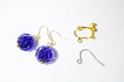 (変更はフック部分のみです。とんぼ玉の中に通しているTピン・丸カンはメッキになりますので、金属アレルギーの方はご注意くださいませ。)