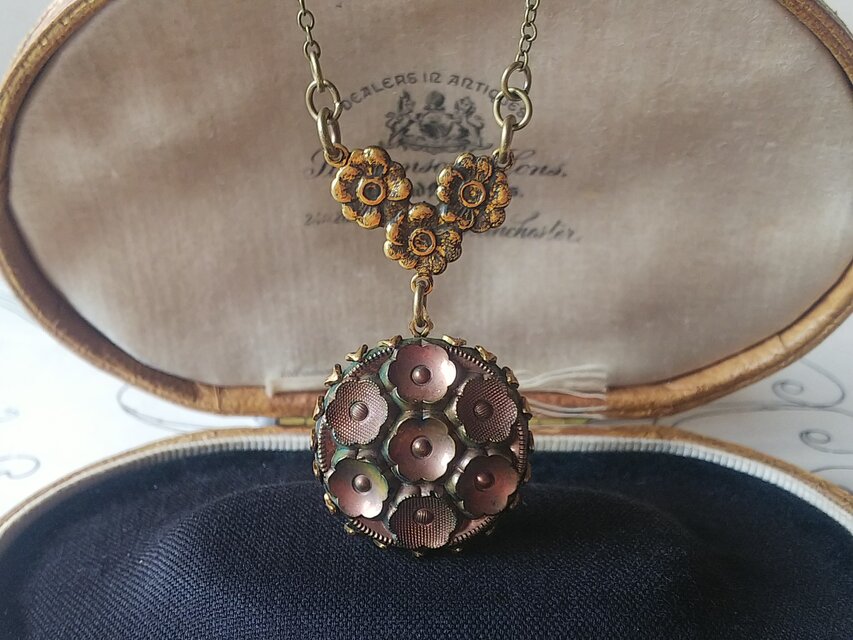 ヴィンテージ Brown-オーロラ(23㎜)お花いっぱいのネックレス