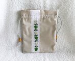しっかりめのコットンリネンに薄い水色の花の刺繍を施した巾着です。