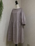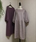 送料無料 リネン100%バルーンスリーブワンピース アンティークモーヴ