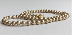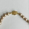オールノットネックレスの特徴として、万が一糸が切れた場合でも最小限で抑えられる点や、玉同士が密着していないので擦れあいにくく傷も付きにくい点・又首回りにフィットしやすくなっている点等がございます。この仕様は特に海外で人気があり、比較的高品質アクセサリー類によくみられる仕様です。※当店の自社工場にて塗装されたパールになります。品質の状態も維持されており、剥がれや大きな目立った傷などもございません。※ピンホールや小さい凹み等が稀にございますが、品質に問題は無く許容範囲とさせて頂きます。
