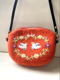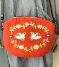 鳥とお花の羊毛刺繍ポシェット(レッド×小鳥)