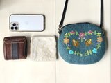 すぐ取り出したい小物、スマホ、ハンカチ、財布(画像の財布は10✖️10cm、長財布は入りません)などを入れて持ち歩くのに便利です。