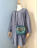 鳥とお花の羊毛刺繍ポシェット(モスグリーン×リス)