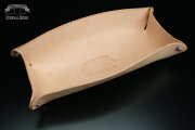お家の玄関先で鍵を入れたり、お店のカウンターでお金を受け渡したりできるトレイをサドルレザー(牛革)で製作いたしました。